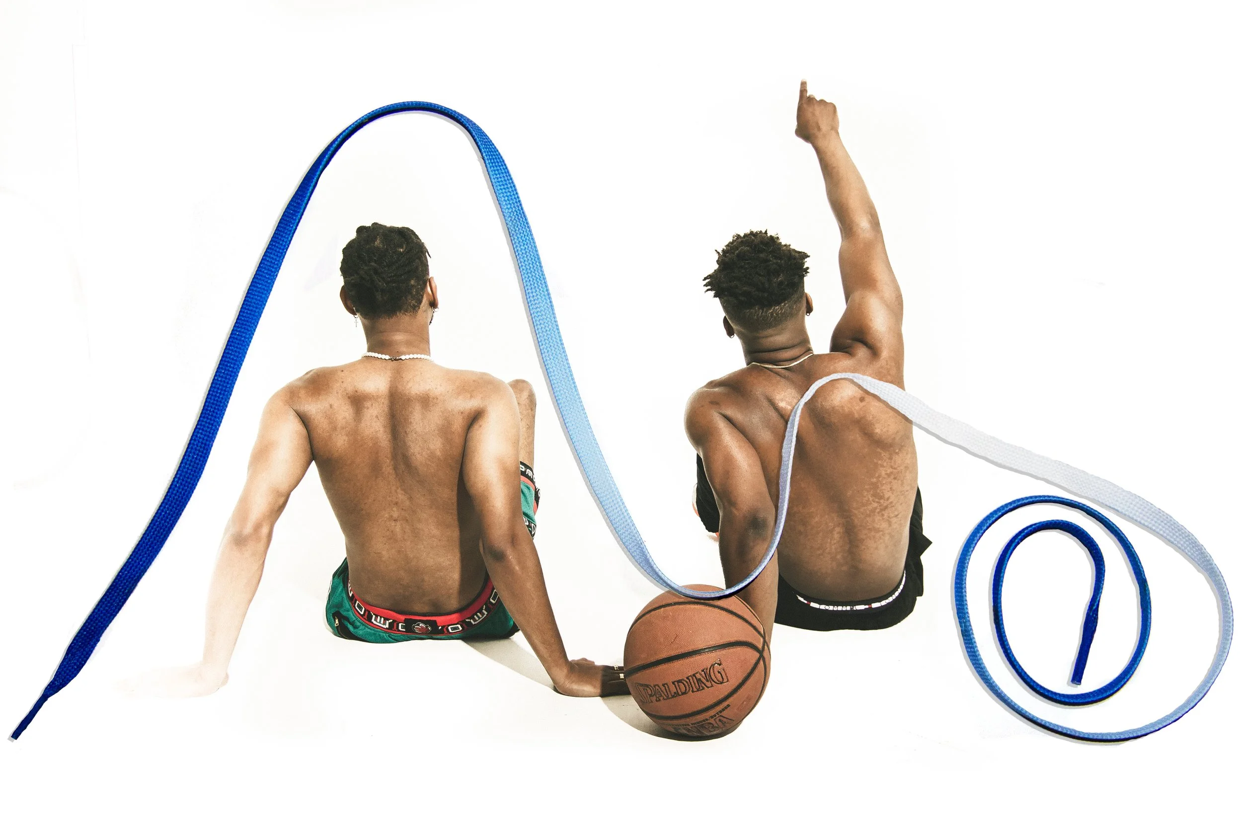 The placement of shoelaces adorning each image amplifies the sentiment of childlike play, a dreamlike aura, while evoking a poignant nostalgia that arises with the realization of nurturing talents outside the comfort of their home.